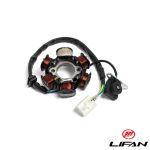 Lifan 4-takt automat, med underliggande startmotor och liggande cylinder.
