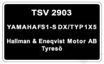 Typskylt Yamaha FS1-S DX/Typ 1X5, säljs styckvis.