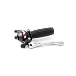 Ett komplett 2-växlat växelhandtag med svart handtagsklove och svart räfflat gummihandtag. Kopplingsarmen är i polerad aluminium med kula.