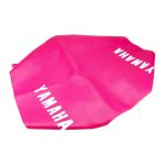 Sadelklädsel Yamaha DT50MX. Rosa med vit text.