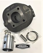 Portad av Mopedfantasterna. Denna NTS cylinder har bra bottendrag, och ett brett register. Cylindern passar bra till de flesta avgassystem. Insug och avgasport är bearbetad. Lämplig förgasarstorlek 15mm.